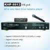 --------------------------------------------------------------- The feature of KHP-8812 HDD karaoke machine: --------------------------------------------------------------- <KARAOKE SYSTEM> function: 1. Select songs by OSD menu, max.30000 songs records in the songlist. Select songs by number,theoretically,supports songs count max.100,000. 2. Can be built-in IDE or SATA interface hard disk, supports the maximum capacity of 2TB,FAT32 format. 3. Menu support UNICODE fronts, can display the languages of many countries, include English,Chinese,Traditional,Spanish,Japanese,Karean,Thai,Vietnamese,Russian,Khmer,Myanmar, etc. 4. Support for playback song format such as VCD( MPEG1/DAT),DVD(MPEG2/VOB), MPEG4(DIVX) ,CDG,MP3+G etc. 5. Support for switch the Multi-audio-track of VOB file.Keep Vocal/Muisc status.(Audio A1,A0,C1,C0,81,80) 6. Easy to operate, Karaoke with songs Reserved ,Insert,Replay and other function Interface clearly. 7. A variety of ways to select songs:selected by number/by artist/by words/by language,ect.Operation directly and rapidly. 8. Super songs management tool: use SonglistManager software tool provide by original factory , can easily to create and manage the E-songlist,Do not be required professional. 9. Three kinds of way to add songs:1)Can connect the computer with USB2.0, add songs into the hard disk of machine by computer. 2)Also can edit songs in the computer first, then copy the ok song files into U Disk or Mobile Hard Disk, then insert the U Disk or Mobile Hard Disk into the port of machine, operate the remote control to add the songs into the machine automatically. 3)Also can add song from DVD /VCD disc directly. 10. User can customize the song menu option,easily to program the menu interface used for own operating habits. 11. Can display score with cheering and applause after each song finished. To enhance entertainment effects. 12. The function of INSERT COIN with active mode or passive mode ,can meet the customers for commercial purposed. 13. The function of playback by random. 14. Has internal microphone Echo, user can plug the Mic directly to singing 15. There is IR interface, can extenal remote control receive sensor, it is use for connect with remote control keyboard. 16. Support MTV songs files encryption,avoid piracy. <VOD PLAYBACK SYSTEM >: 1. Can use the remote control to browse the movies ,music, picture are stored in hard disk,U disk, mobile HD ,SD card. 2. Support for multimedia format, as VCD(MPEG1/DAT)/DVD (MPEG2/VOB), MPEG4(DIVX-AVI),CD+G,MP3,WMA,JPEG etc. 3. Cycle autoplay function, can for public playing machine, or background music player. <DVD/CD-G PLAYBACK FUNCTION>: 1. 4 decode, compatible with various discs such as DVD/SVCD/DVCD/VCD/MP3/CD/ CD+G/HDCD/JPG/ALBUM/Mr.OKO etc 2. Video output: (1) CVBS interlace scan. (2) Component R,G,B interlace scan or progressive scan. (3) S-Video. interlace scan. 3. Audio output: Dolby AC-3 5.1 Audio Channel. 4. DVD CSS (Content Scrambling System) decoding 5. Reserved Analogue power amplifier, X1/4, X1/2, X2, X4 flexible zoom. ------------------------------------------------------ Now let's look at the front of the machine: ------------------------------------------------------ The appearance size is 430mm(long)*280mm(width)*70mm(high), weight:about 4KG. The size coordinate with the volume size of DVD machine/amplifier, looks very nice. Aluminum panel ,it is a professional style ,like : DVD-ROM disc tray, SD socket,remote sensor window, LED digital display ,Power On & Off, Microphone jack and ECHO adjustment knob. The black background with white fonts.give you the feeling of strong. ------------------------------------------------------------------------ The design of the machine's rear panel and accessories: ------------------------------------------------------------------------ This is a feature of machine's rear panel, there are AV OUT video output,YPbPr(component output),S-VIDEO output,5.1Channel,Optical output,Coin signal port,MIC SCORE(Enternal scoring input port),USB2.0/ HOST USB(OTG) interface,VGA,IR,12V DC Power output. Those functions can meet the requirements on different occasions. The 5.1 channel can be used when playing DVD, when playing KTV karaoke,the L/R stereo audio can be used. Coin signal port can operation by two ways,active and passive. Connect USB2.0 port with USB line will become a Hard Disk Enternal device. It is useful if use HOST USB port ,it supports OTG,can playback the multi-media in U Disk/Mobile Hard Disk /local Hard Disk ,now the whole machine becomes a Multi-media Hard Disk Player. The accessories in package is complete,include a USB Line,a AV Line, a Chinese and English Manual,a CD Disc with system file,Songlist Edit Software and Demo Songs. Remote control is the necessary accessorie. ---------------------------------------------------------- Let's connect with TV and amplifier to try now: ---------------------------------------------------------- Connect the audio/video output of the machine with audio/video input of amplifier or TV,and plug the Micphone to the machine ,all the preparations have been completed ,Turn the power on,will display the startup screen,then begin to loading the database in the hard disk(should copy system files and song files to the hard disk),then will display the interface that select song by number ,now we can input a song number:60001,press PLAY button,the song will going to playback,the operation is easy and convenient. We can continue to select songs when there is someone singing ,in the top of the screen display the selected songs bar,it is clear at a glance.when finish a song ,the screen will display the scoreing and give a applause,in order to increase the fun. Another ,the function of select songs by menu is complete,press OSD button on remote control, can select song by artist,by language,by words, by number and type. --------------------------------------------------------------------- Let's know what function does the remote control hav